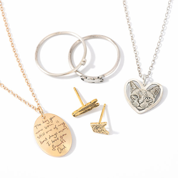 From beloved pets to meaningful handwriting and drawings, the most special jewelry begins with a memory. We turn those moments into timeless keepsakes you can wear and treasure. ↓ Scroll for inspiration