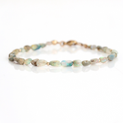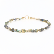 A timeless and elegant piece, this opal bracelet showcases the natural iridescence of Ethiopian Opal nuggets. Subtle flashes of color catch the light, making each bracelet uniquely beautiful. Perfect for stacking or wearing on its own for a minimal yet eye-catching look.