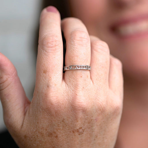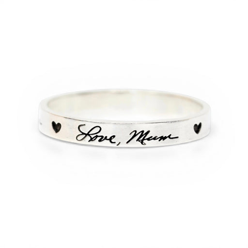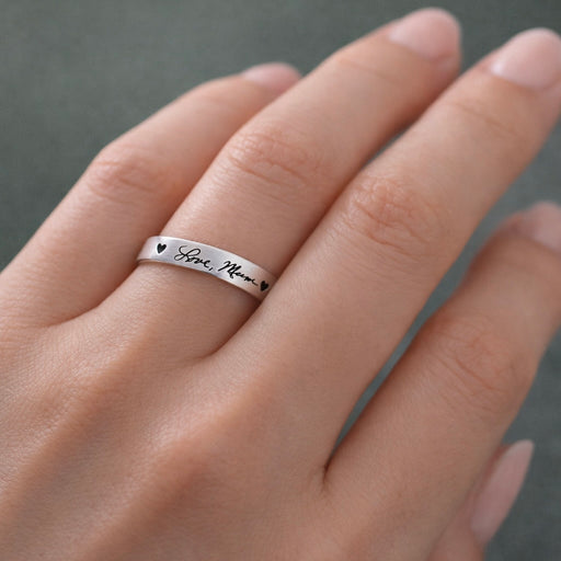 Turn a meaningful message into something you can wear every day. This custom handwriting stacking ring is engraved with your actual script — a sig...