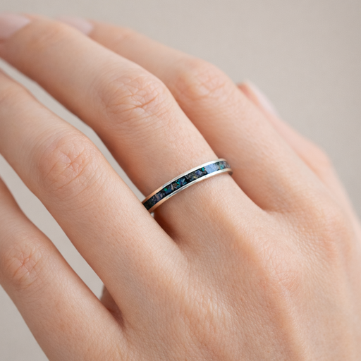 Wrenn JewelryThis sterling silver Australian opal inlay ring highlights the vibrant flashes of color found in genuine Australian opal. Each ring is carefully ha...
