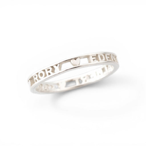 Wrenn JewelryThis custom name ring is a meaningful way to keep your family close, featuring a heart between each name or symbol. Listing is for one (1) custom...