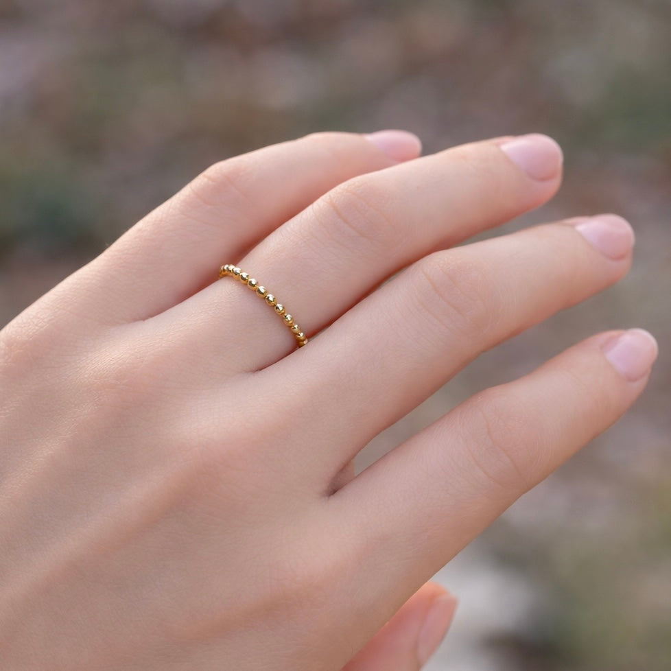 The Beaded Stacking Ring is a timeless essential designed for effortless everyday wear. Featuring a delicate beaded texture, this band adds subtle detail while maintaining a clean, minimalist feel. Wear it alone for a refined look or stack it with your favorite rings to create a style that’s uniquely yours.